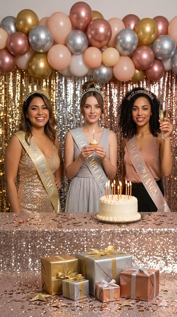 (1 UNIDAD) SET VINCHA STRASS Y BANDA FELIZ CUMPLEAÑOS (DETALLAR COLOR)