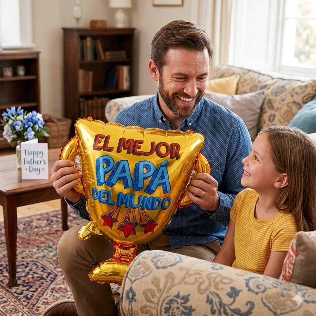 (2 UNIDADES) GLOBO METALIZADO SILUETA TROFEO EL MEJOR PAPA DEL MUNDO 30X30CM