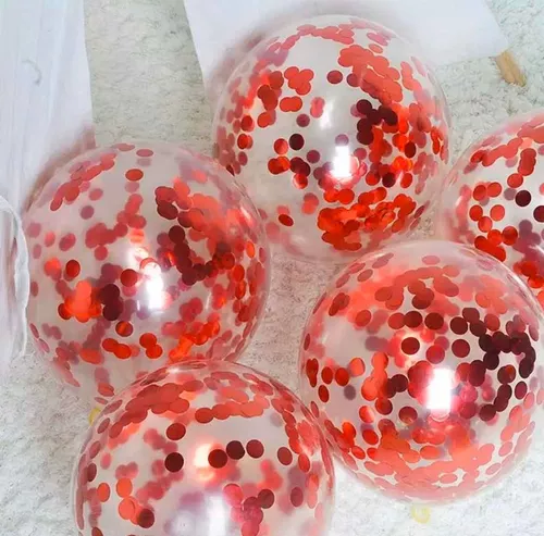 GLOBO CON CONFETTI X 5 UNIDADES (ROJO)