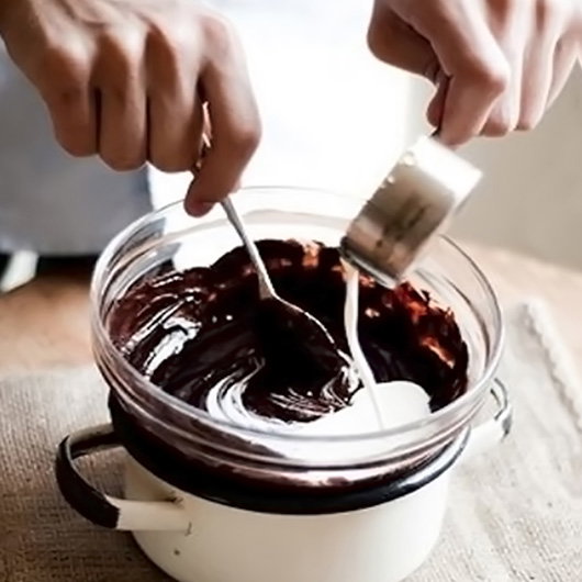 3 - Deje derretir un poco el chocolate, luego revuelva para obtener una mezcla brillante y homogénea.