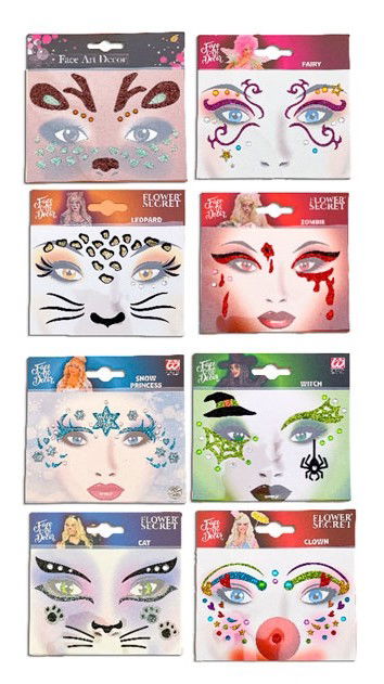 APLIQUE GIBREADO Y CRISTALES PARA ROSTRO MODELOS Y COLORES SURTIDOS HALLOWEEN