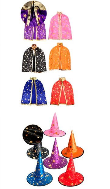 CAPA DE MAGO C/SOMBRERO Y ESTRELLA 63CM