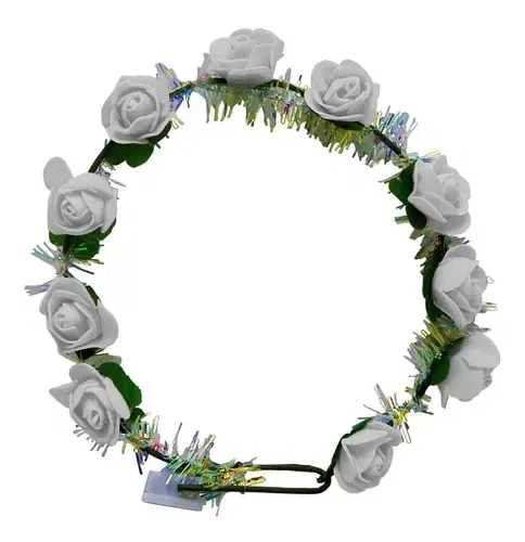 CORONAS CON LUZ FLORES BLANCAS X 1
