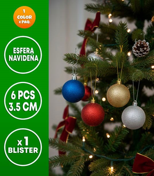 ESFERA NAVIDEÑA GIBREADA 3.5 CM 6PCS 4 COLORES (1COLXPAQ)