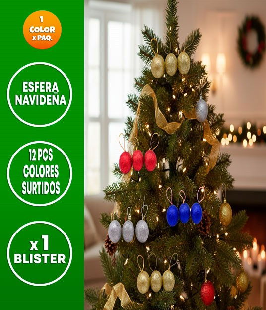 ESFERA NAVIDEÑA GIBREADA 2 CM 12PCS 4 COLORES