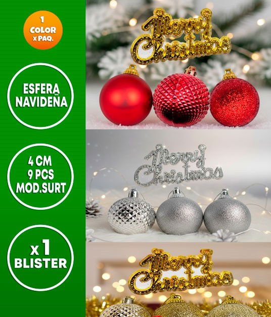 ESFERA NAVIDEÑA MODELOS SURTIDOS 4 CM 9 PCS (1COLXPAQ)