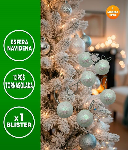 ESFERA NAVIDEÑA 2 CM 12 PCS TORNASOLADA/ CON CONFETTI