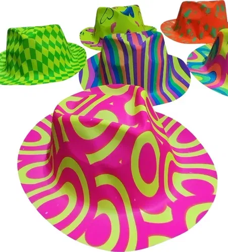 12 GORRO FLUO ESTAMPADO PLASTICO 1 SOLO MODELO X PACK