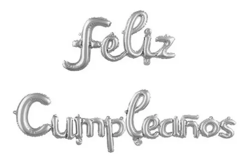 5 UNIDADES DE GLOBO FELIZ CUMPLEAÑOS CURSIVA PLATEADO