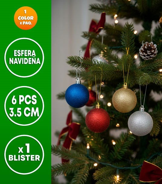 ESFERA NAVIDEÑA GIBREADA 3.5 CM 6PCS 4 COLORES (1COLXPAQ)