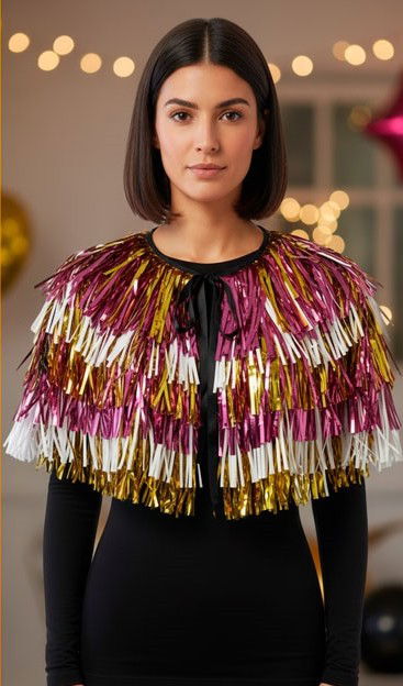 CAPA DE FLECOS METALIZADO 55X35CM TRICOLOR (FUCSIA/DORADO/BLANCO)