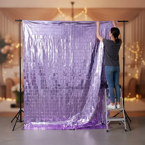 (2 UNIDADES) CORTINA METALIZADA CUADRADOS BRICK WALL 1X2 M LILA