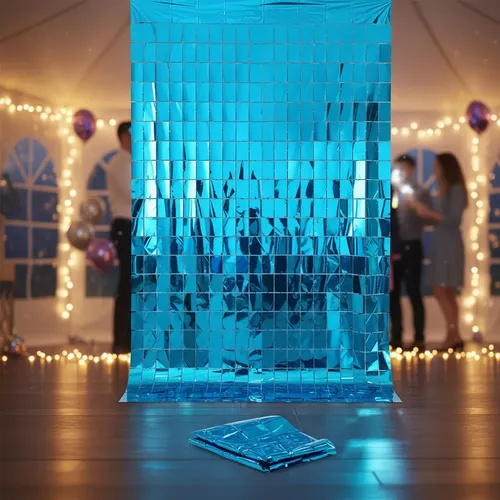 (2 UNIDADES) CORTINA METALIZADA CUADRADOS BRICK WALL 1X2 M CELESTE