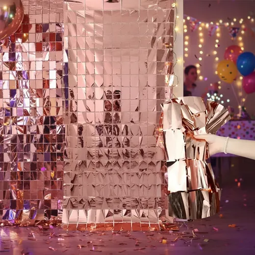 (2 UNIDADES) CORTINA METALIZADA CUADRADOS BRICK WALL 1X2 M ROSA GOLD