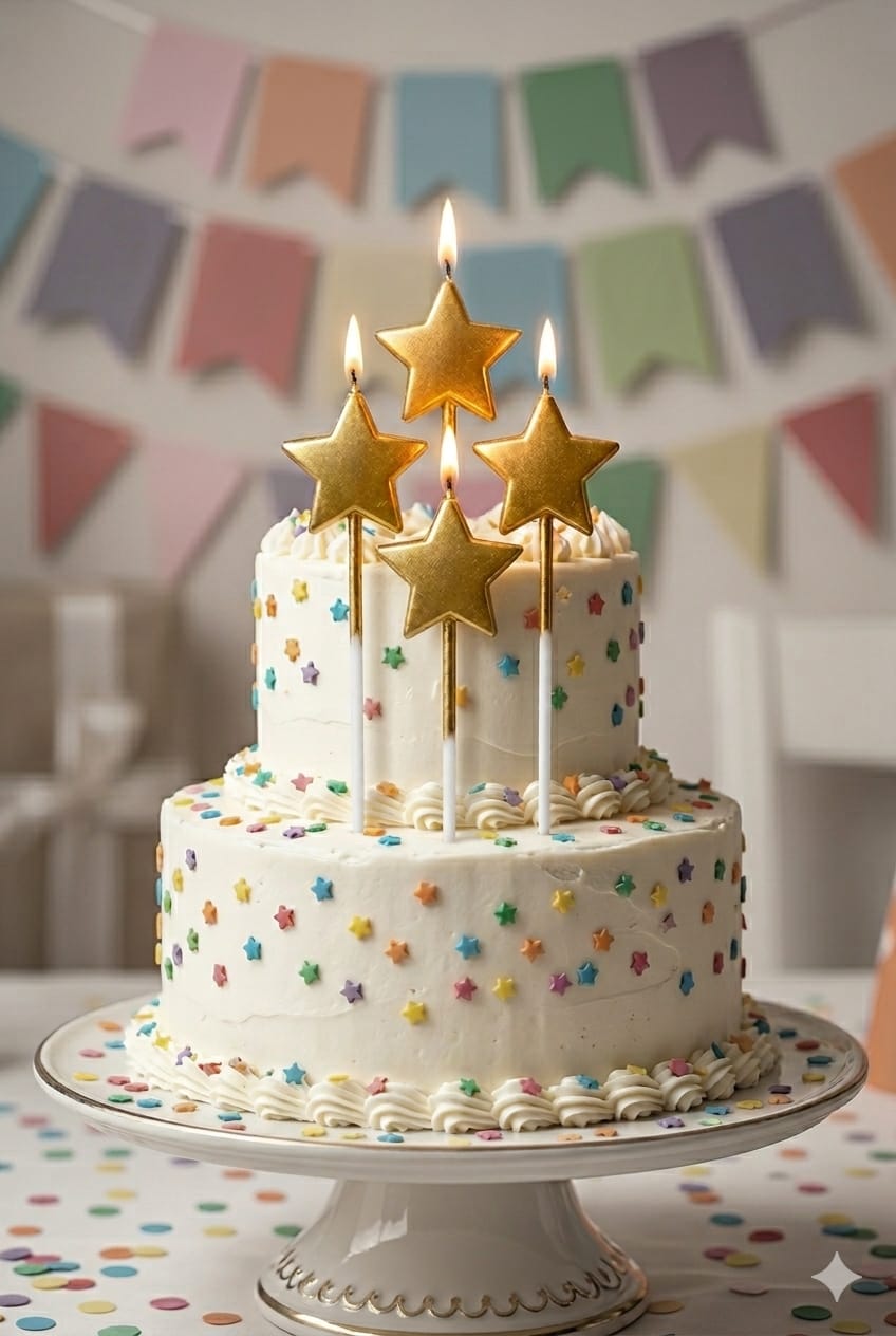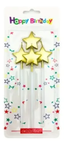 VELA ESTRELLA METALIZADA CON PALITO 4PCS 15CM DORADO